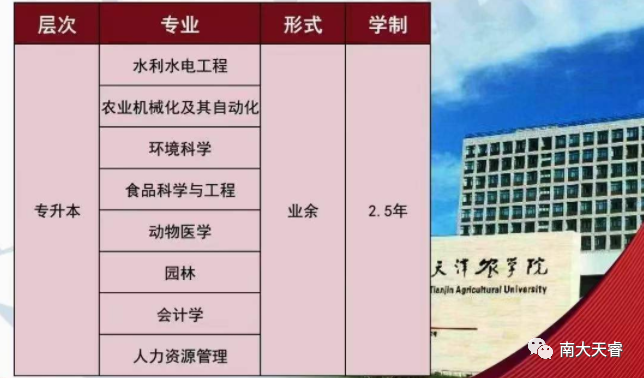 以上就是天津农学院成人高考招生简章相关内容,更多成考咨询欢迎关注天津成考网。